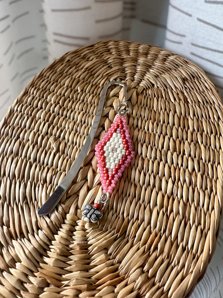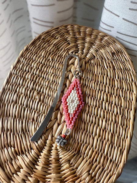Butterfly Mini Bookmark made with seed beads and a dragonfly charm. Finding is stainless steel.